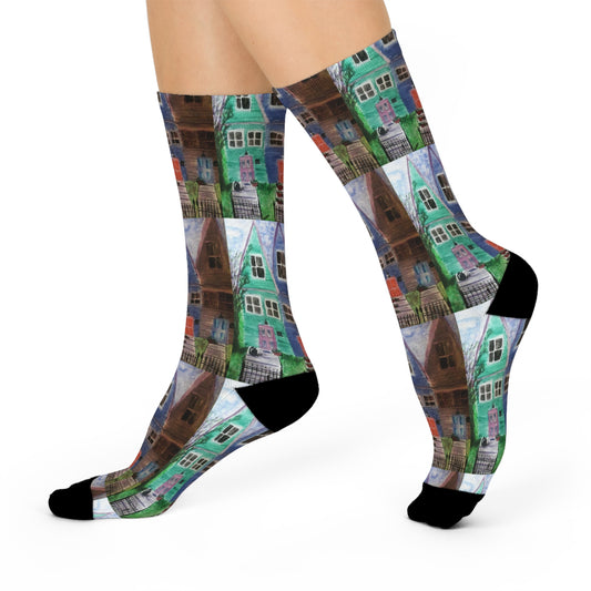 Artistic Cushioned Crew Socks, Colorful Home Design, Unique Gift for Home Decor Enthusiasts, Cozy Socks for Relaxation, Perfect for
